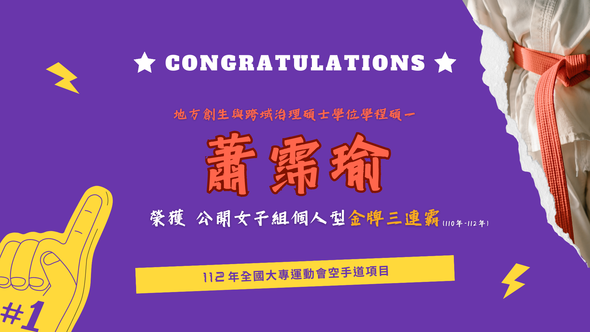 地方創生與跨域治理碩士學位學程碩一 蕭霈瑜 榮獲公開女子組個人型金牌🥇(三連霸)
