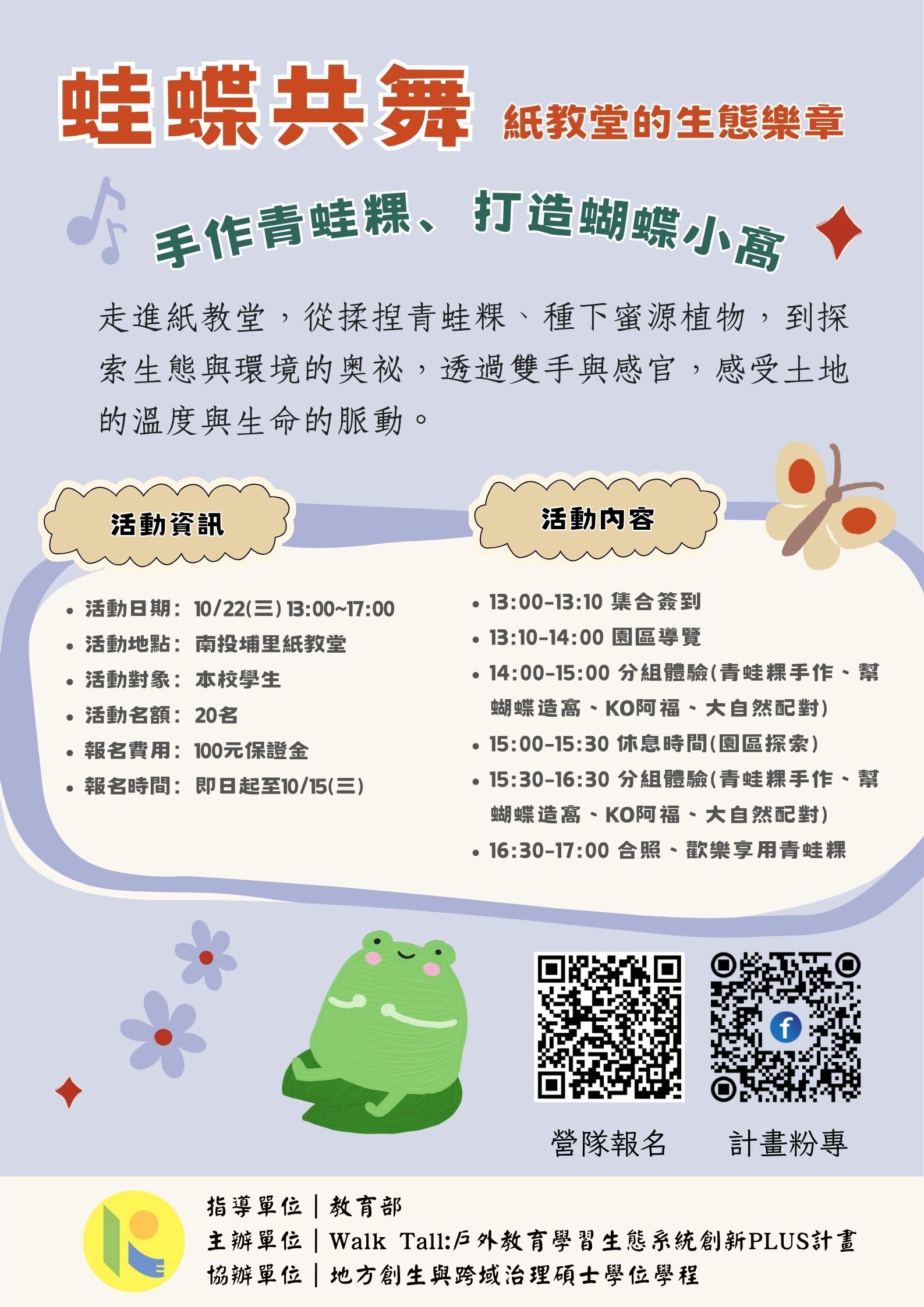 【🌿 水沙連營隊第二場 ✨ 蛙蝶共舞.紙教堂的生態樂章 🎶】